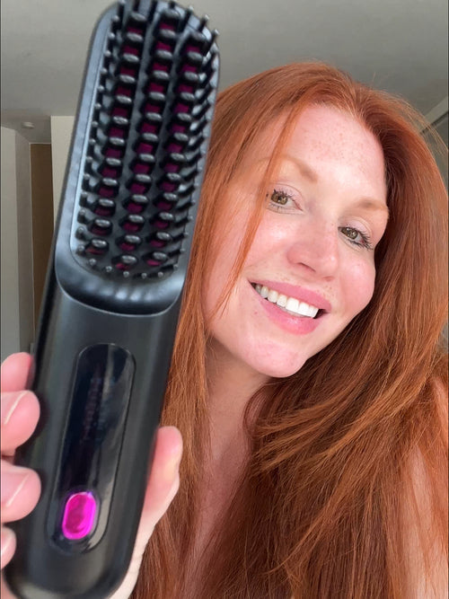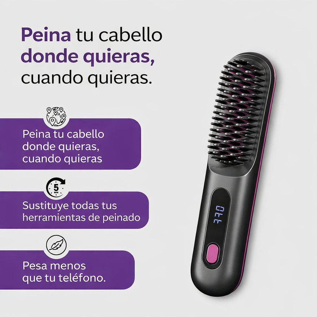 Lo último en comodidad para peinar el cabello. Perfecta para retoques en cualquier lugar, esta elegante herramienta portátil ofrece resultados profesionales sin la molestia de los cables.